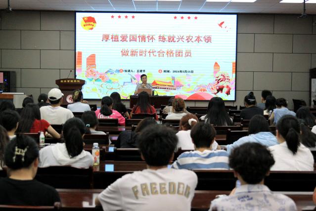 会议尾声,王建平以《厚植爱国情怀,练就兴农本领,做新时代合格团员》为题,围绕“共青团的性质和使命”、“团员青年在历史发展中的重要作用”、“践行好新时代团员青年的使命”三个部分,给大家上了一节内容丰富的微团课。
