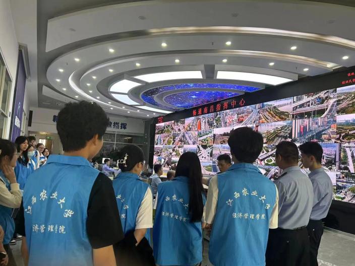 紧跟熊警官的脚步,志愿者们走进了交通直播室,室内陈列了许多相关媒体账号的作品及获奖证书,这些成果展示了南昌市交通官方账号的专业水准,也让我们对其运营模式有了更深刻的理解。接下来,志愿者们抵达了南昌市交通运输指挥中心,交通管理局的王主任为我们详细阐述了南昌市的整个交通运输机制,并深入讲解了指挥中心日常的调度工作与远程治理措施。这些交通方面的工作在保障市民的出行安全、维护交通畅通等方面起着至关重要的作用。