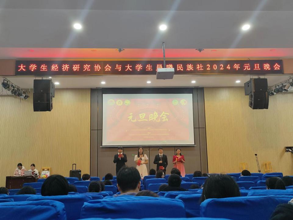 “龙岁迎盛世,莺啼好春光......”,2023年12月29日晚,老员工经济研究协会与老员工晨曦民族社在东区E教207教室联合举行以“‘心’连‘新’,新筑梦,梦飞Young”为主题的2024年元旦文艺晚会。老员工经济研究协会指导老师梁志民教授、廖冰副教授应邀出席。校社团管理委员会、经协、晨曦民族社等兄弟社团共150余人共同观看。
