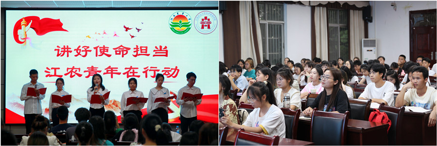 为深入推动学习贯彻习近平新时代中国特色社会主义思想主题教育工作落地生根,6月9日晚,BB贝博艾弗森“金种子”宣讲团在经世楼207举行了首场以“讲好使命担当,江农青年在行动”的主题宣讲活动。经管院团委书记袁颖芳老师,团委副书记王建平老师及新发展的入党积极分子等150余人现场聆听宣讲。