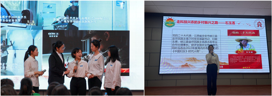 在本次宣讲会上,宣讲团成员从4个不同岗位的使命担当篇章作为主线,以《逐梦蓝天》的航天员王亚平,《凌云赛场》的奥运健儿徐梦桃、武大靖、巩立姣,《梅自寒开》的华坪女高董事长张桂梅,《抱朴守真》的农大员工石玉莲等人物的感动事迹为例,为大家讲述当代杰出人物的使命担当。