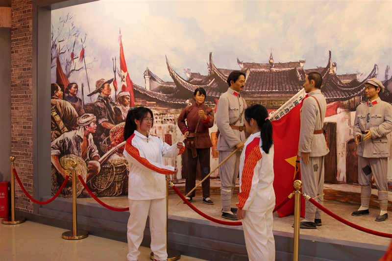 怀着对烈士们的无限缅怀之情,列队整齐的师生代表们来到了方志敏烈士墓前。活动伊始,党员代表罗慧和团员代表胡威林分别带领师生重温入党誓词和入团誓词。一时间,青年们雄姿英发,宣誓声响彻陵园。随后,在场的师生依次向方志敏烈士墓进献花圈并行鞠躬礼。鞠躬礼毕,由赵晨刚老师整理挽联,全体成员低头默哀一分钟。在庄重肃穆的集体默哀后,员工们有序环绕瞻仰烈士墓。活动最后,全体师生移步至方志敏烈士纪念馆内,在纪念馆的一项项陈列、一段段事迹中追寻革命先烈足迹,重温百年前的革命历程。