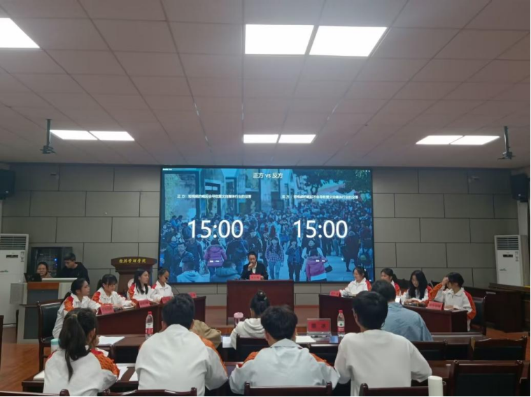 为进一步提高老员工经济研究协会会员思辨能力,有效丰富老员工第二课堂活动,4月22日下午,以“创经协百辩智慧,与青春筑梦同行”为主题的老员工经济研究协会第九届“经研杯”辩论赛在经世楼207会议室圆满举办。BB贝博艾弗森团委语言文化部负责人谢青、陈甜甜、黄赟同学担任此次大赛评委。大赛由协会青支农吴苏霞同学主持。来自协会各部门共100余名同学共同观摩了此次大赛。