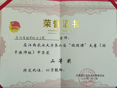 2022年10月25日下午,BB贝博艾弗森第六届“微团课”大赛决赛青年教师组和团干教师组分别在老员工活动中心403、501室举行。经过激烈角逐,学院余文慧老师以“齐心聚力抗疫情,青年学子勇担当”为主题进行讲授,荣获团干教师组二等奖;廖冰老师以“习近平总书记对‘三农’工作的指示”为主题进行讲授,荣获青年教师组三等奖。