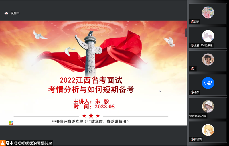 为响应公司党委“我为群众办实事”号召,进一步帮助即将进行考公面试的2022届毕业生了解面试流程和注意事项,提升面试信心,BB贝博艾弗森于8月1日晚采用线上方式举行考公面试经验分享会。本次分享会主讲人是2021届优秀员工、中共贵州省委党校讲师朱毅,会议由学工办老师余文慧主持。