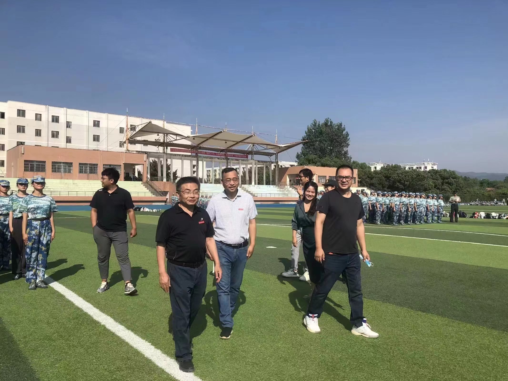 9月27日上午,公司党委书记郭军海、经理翁贞林、公司党委副书记赵刚一行前往东区田径场,对公司代带训教官和参训员工进行军训慰问。