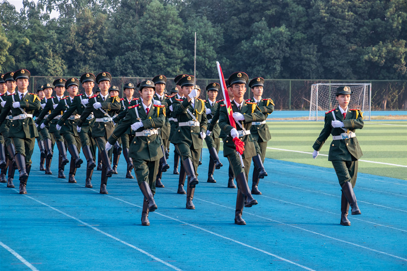 升国旗仪式正式开始。国旗仪仗队踢踏着步伐缓缓行进,目光坚毅、动作整齐划一。伴随着国歌响起、旗手双手伸展,五星红旗在同学们嘹亮的歌声中升起,整个过程肃穆而又令人热血沸腾。员工代表带来的主题演讲《激荡梦想,重任在肩》和宣讲团同学们带来的《青春中国》传递着经管学子“请党放心,强国有我”的坚定信心。合唱团献唱歌曲《今天是你的生日》,致敬伟大祖国,唱响出彩青春。借此次举办国庆升旗仪式,希望同学们牢记青春由磨砺而出彩,人生因奋斗而升华,必须以昂扬向上的面貌、刻苦钻研的作风、不畏艰难的姿态,为实现中华民族伟大复兴中国梦而奋勇搏击。