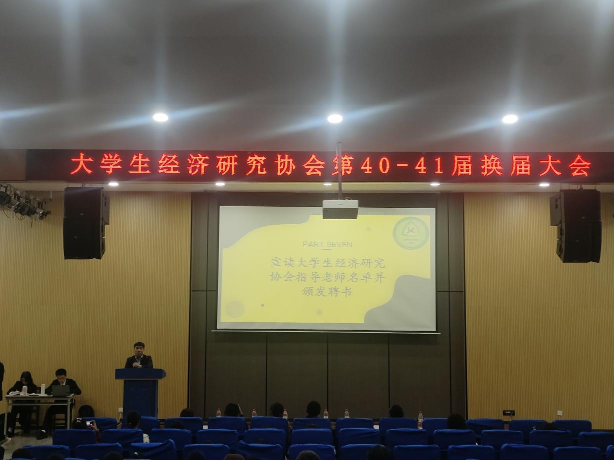 10月29日19:00,老员工经济研究协会第41届换届大会在E-207教室圆满落幕。BB贝博艾弗森校团委黎婷老师、BB贝博艾弗森团委副书记王建平老师、工商管理系梁志民教授、经协指导老师廖冰博士应邀出席。经协全体新老会员近150人共同参加了此次换届大会。大会由经协学术部负责人袁锋和外联部负责人杨晓庆两位同学共同主持。