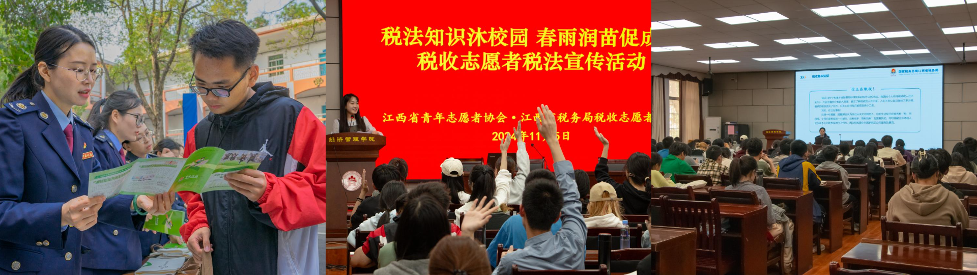 为向社会和公众普及税法知识,增强公民纳税意识,助力老员工就业创业,江西省青年志愿者协会、江西省税务局税收志愿者团队与公司联合开展“税法知识沐校园·春雨润苗促成长”——“税法进校园”税收志愿者宣传活动。活动于11月5日下午在经世楼207开展,江西省青年志愿者协会、江西省税务局税收志愿者团队、校团委、BB贝博艾弗森有关负责人出席现场活动。