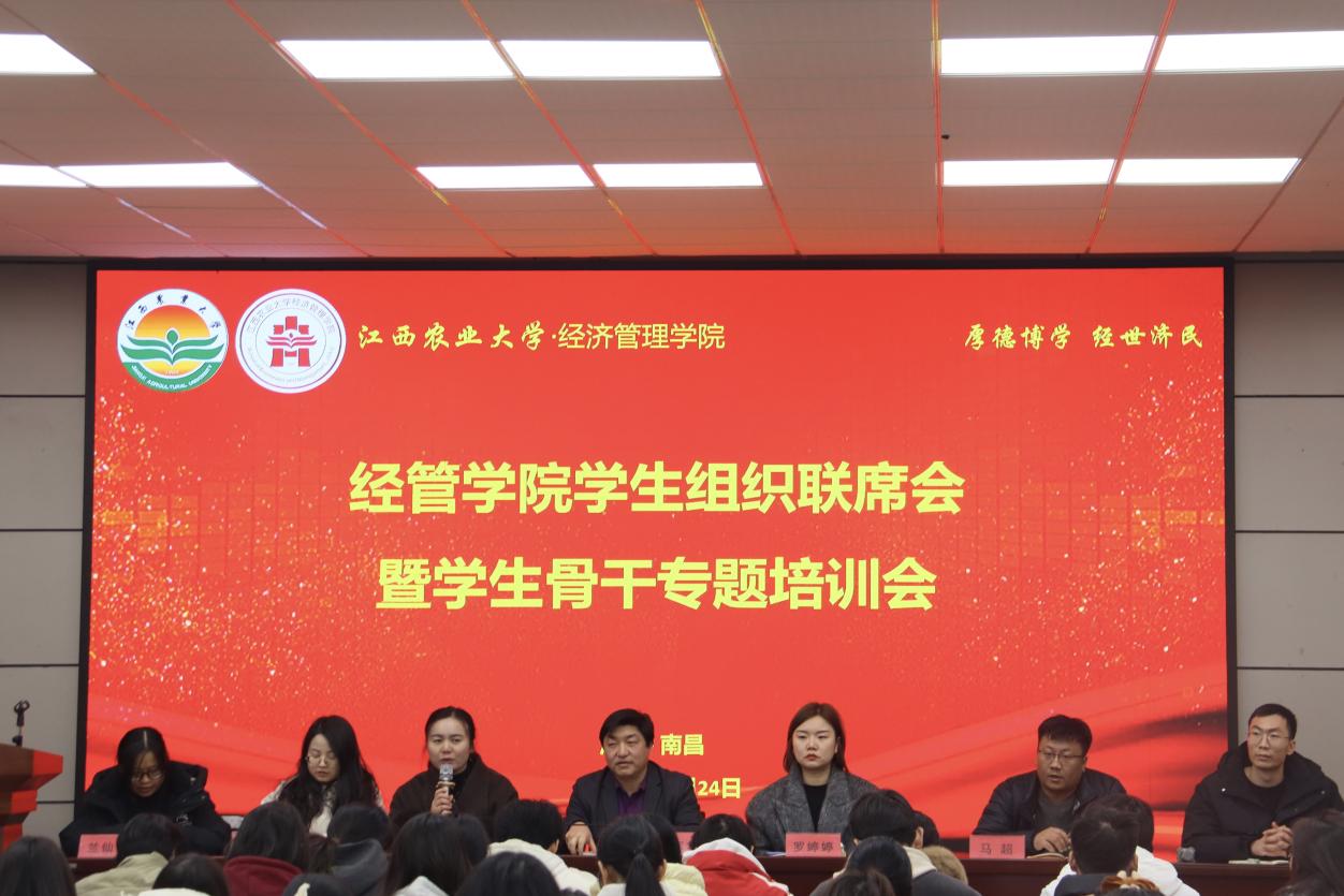 为加强员工干部思想引领,强化员工干部队伍建设,提升团学组织间的交流合作,BB贝博艾弗森于2024年12月24日在经世楼207开展员工组织联席会暨员工骨干专题培训会。公司党委副书记、团学主要负责老师、各员工组织主要负责人、各年级班长团支书出席本次会议。会议由学工办主任曹欢主持。