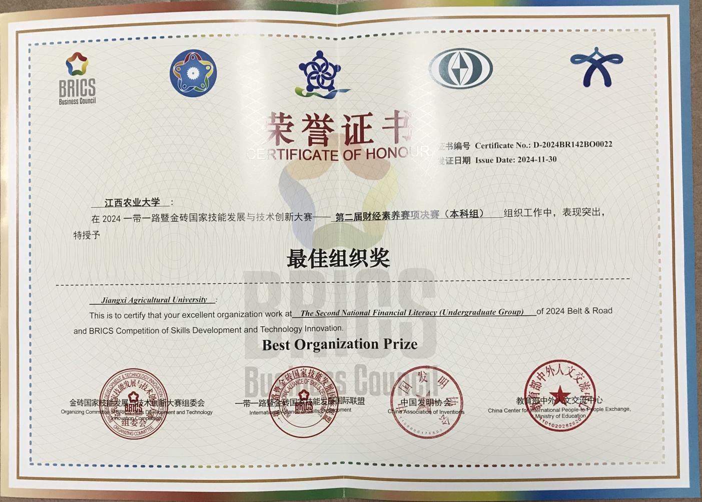 本届大赛由金砖国家工商理事会中方理事会、一带一路暨金砖国家技能发展国际联盟主办,中国科协“一带一路”暨金砖国家技能发展与技术创新培训中心承办,旨在提升金砖国家技能发展水平,服务先进制造领域,推动高校财经素养教育与实践创新。大赛吸引了来自全国一百多所高校的学子以及国际选手参加,选手需完成财经素养专业知识考核、财经素养职业技能考核。公司此次成绩是公司“以赛促教、以赛促学、以赛促改”教学理念的成果,体现了公司会计学专业员工在全国财经领域竞赛中的竞争力,也展示出公司在财经素养教育领域的教学水平和人才培养成效。