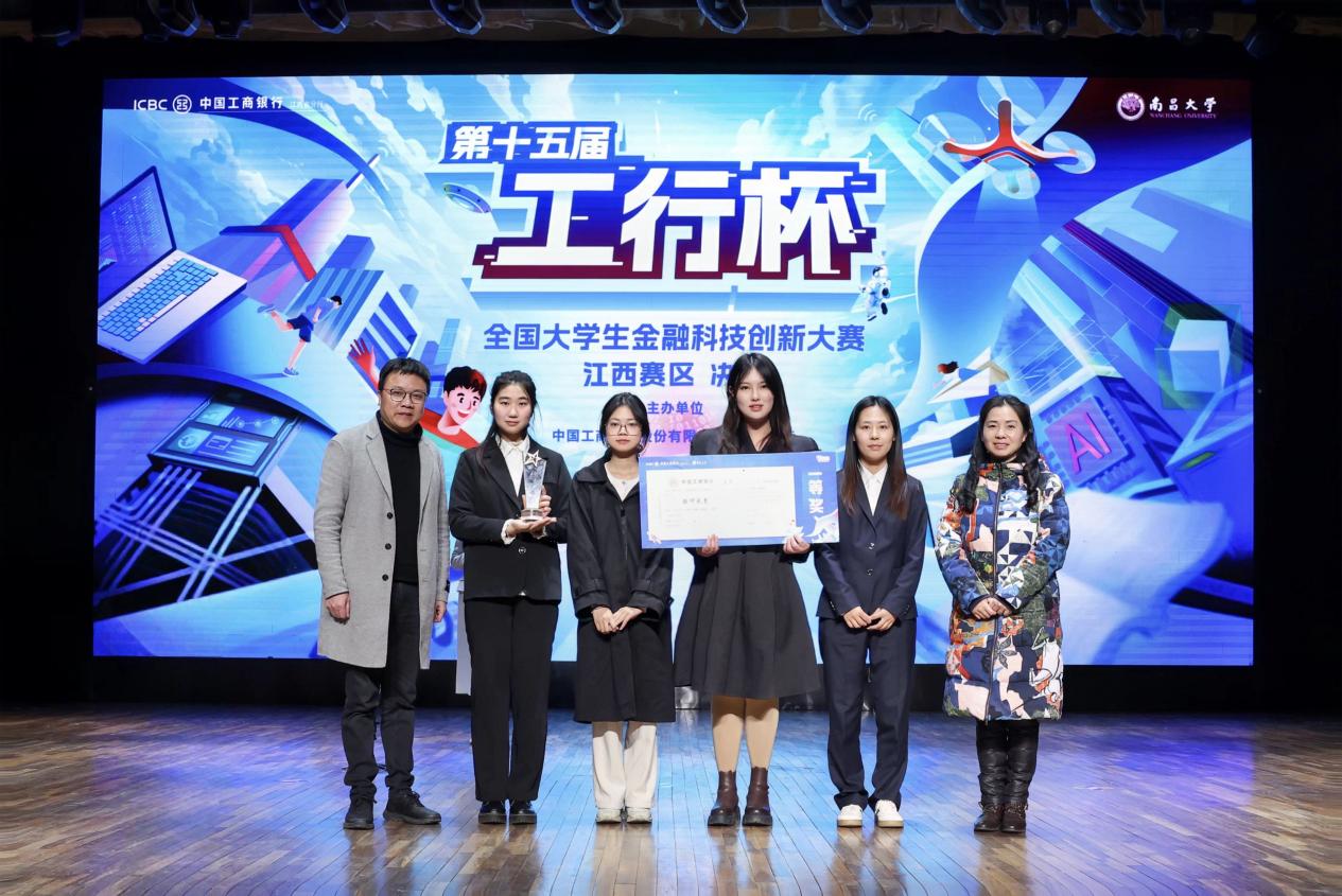本届大赛江西赛区,竞争异常激烈,吸引了1287名学子报名参赛,提交的作品多达833件,经层层筛选,仅有12组作品脱颖而出,成功入围决赛。在决赛舞台上,公司学子凭借扎实的专业知识和创新思维能力大放异彩。由刘小春和吴文军两位老师共同指导,曹文馨、黎琪和邓涵韵三位同学共同完成的“工颐银龄——基于区块链用户画像技术的养老金融客户综合智能服务平台”方案一路过关斩将,最终勇夺一等奖。由张小有老师指导,贺婷同学完成的“E起向云端——面向低空经济运营企业的金融服务方案”,聚焦低空经济这一新兴领域,为相关企业量身定制金融服务,成功斩获三等奖。
