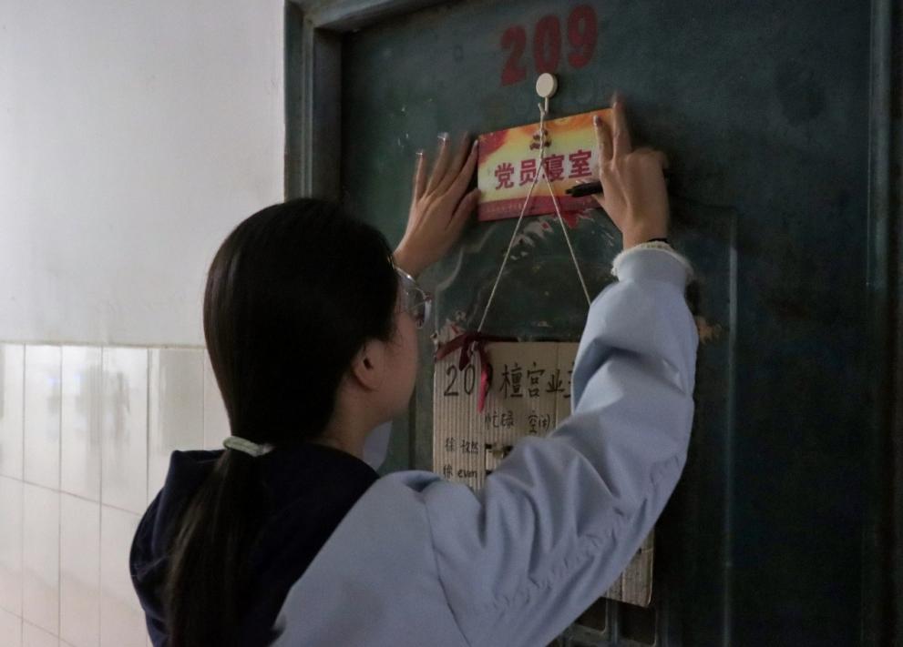 一块熠熠生辉的标牌,不仅是党员身份的鲜明昭示,更是先锋模范与旗帜作用的庄严践行。它时刻鞭策着党员同志以“标杆”姿态严格自律,在勤学善思、文明修身、团结互助中走在前、作表率,用实际行动诠释党员的责任与担当;更以鲜明的旗帜引领方向,让寝室伙伴有榜样可学、有标杆可依。党员寝室将以挂牌为起点,成为凝聚正能量的“红色堡垒”、引领新风尚的“先锋旗帜”,让党员的先锋模范作用渗透到日常点滴,让红色旗帜在寝室一线高高飘扬,为构建文明和谐、奋发向上的校园环境注入强劲红色动力。