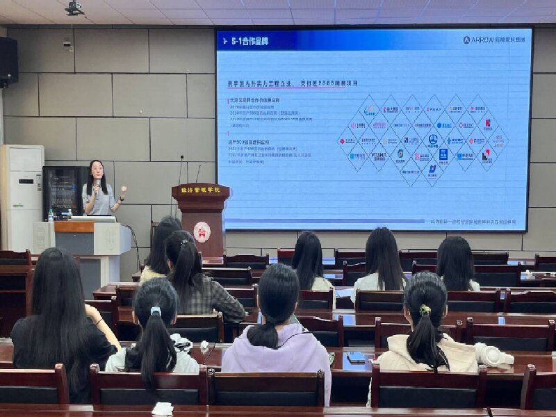 宣讲会伊始,刘经理以PPT的方式就该公司发展现状、企业文化及业务领域等概况展开介绍。紧接着,她强调公司“箭习生”专属校招人才培养体系和双导师制,为员工提供公平公正的晋升通道,助力“箭习生”快速成长。最后,她就毕业生们关心的薪酬待遇、奖金福利及校招流程进行了详细介绍,并鼓励毕业生们积极投递简历。