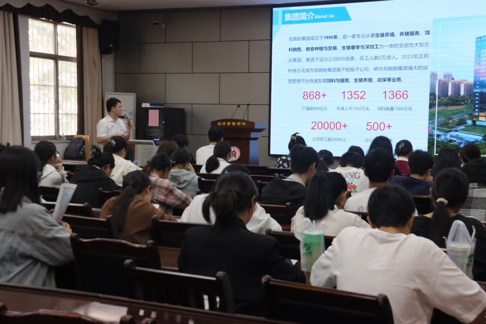 10月11日下午14:30,公司于经世楼207室成功组织召开双胞胎(集团)股份有限公司宣讲会,本次宣讲会由该公司HR刘金柏主讲。