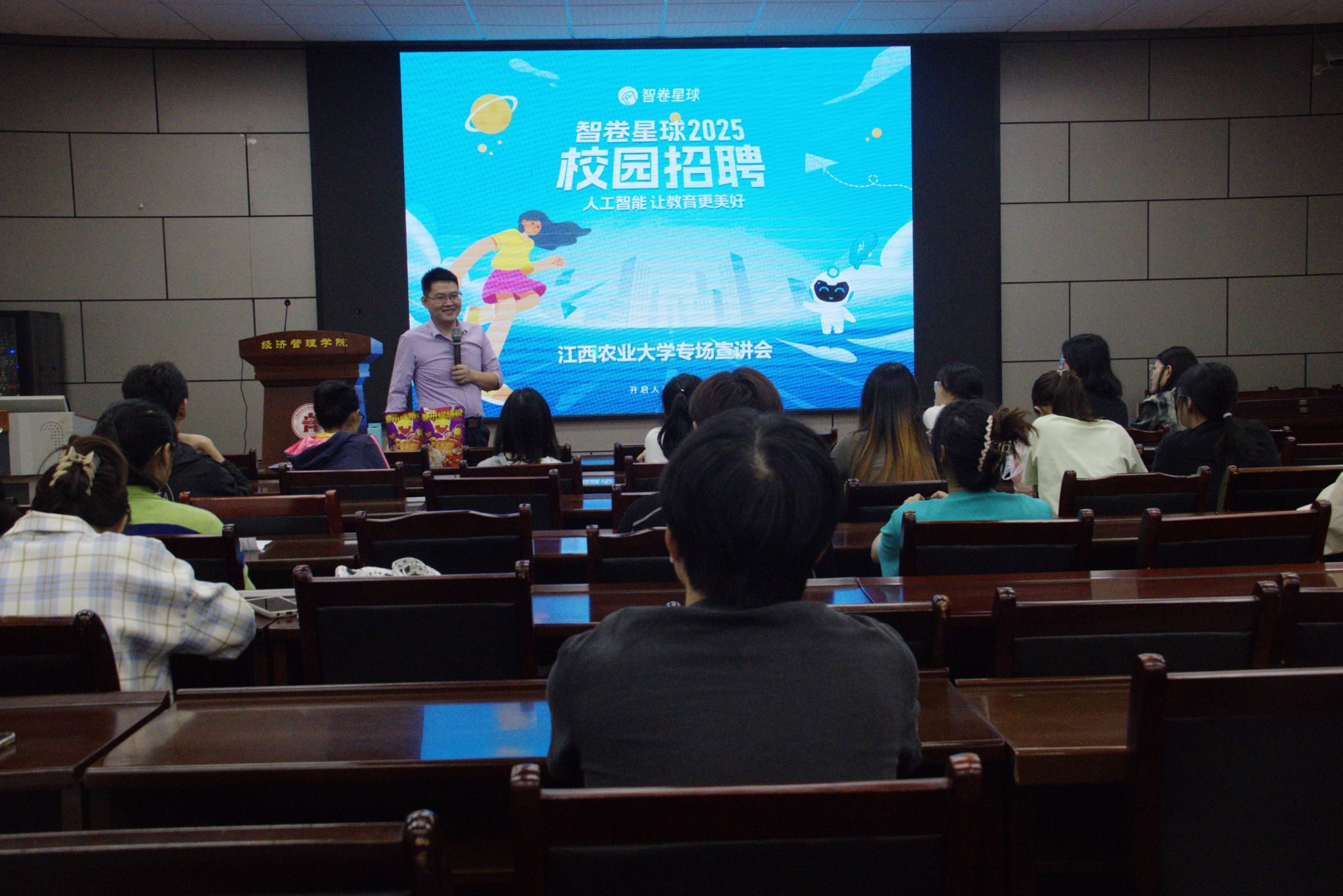 10月12日晚19:00,公司于经世楼207室成功组织召开杭州智卷星球校园招聘宣讲会,本次宣讲会由该公司HR熊辉主讲。
