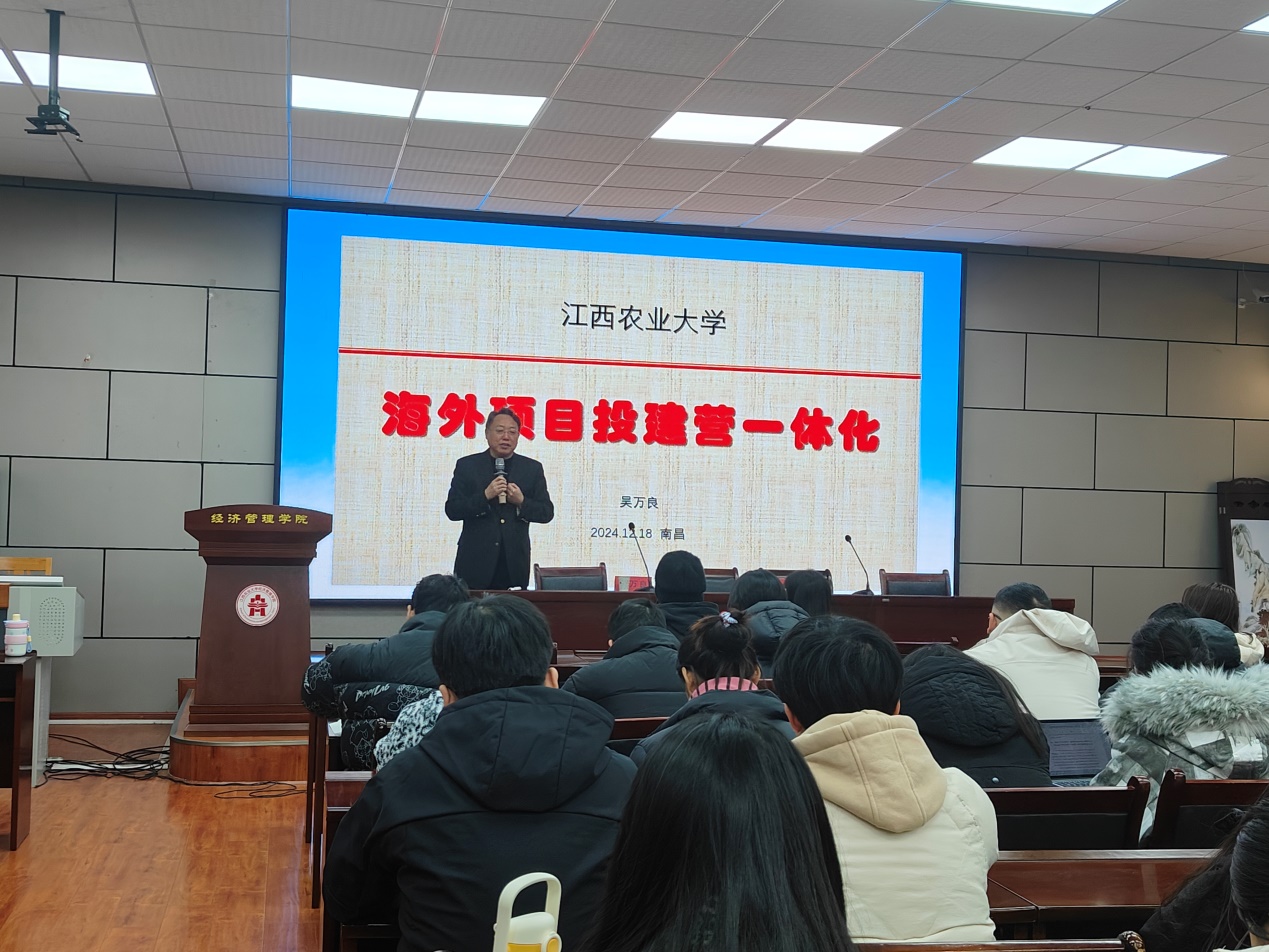 2024年12月18日下午,中央财经大学管理科学与工程公司、对外经济贸易大学中国金融公司客座教授吴万良先生应邀来公司作了《国际投资建设运营一体化》的专题讲座,讲座由经管院会计系张春美教授主持,公司会计研究生及其他专业部分研究生参加。吴万良先生曾任中国土木集团公司董事长,长期在央企从事企业管理、投资管理及海外工程管理工作。