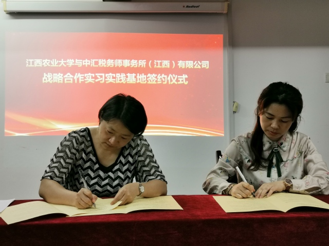 经前期友好协商,公司与南昌市中汇税务师事务所(江西)有限公司达成了研究生实践教学基地建设协议。9月26日下午,公司MPAcc教育中心主任张征华、副主任肖小玮,会计系主任吴丽萍、副主任金晶,会计系教师邓平华,抵达位于南昌市西湖区的南昌市中汇税务师事务所(江西)有限公司进行基地挂牌签约仪式。