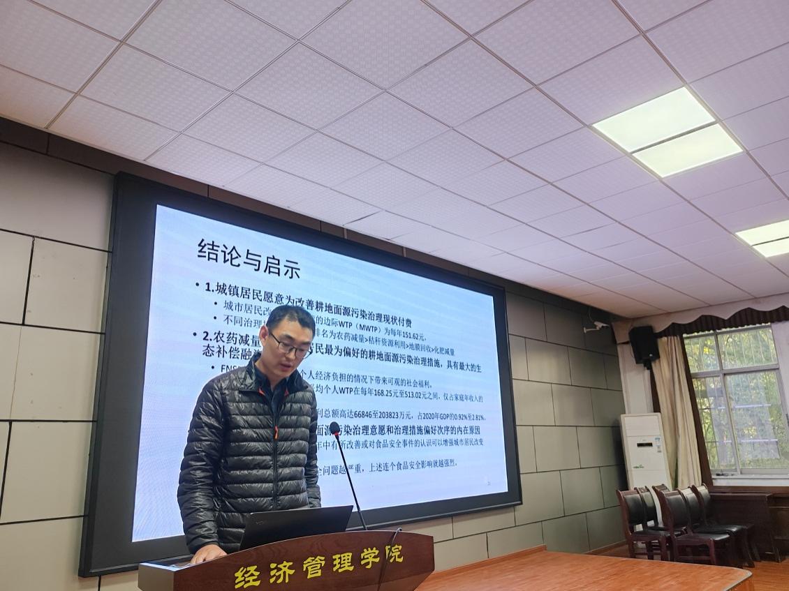 史雨星博士的报告以“耕地面源污染治理的公众偏好及其关键影响因素:一个基于甘肃省的选择实验”为题,他介绍了研究中所用的选择实验法,基于甘肃省分层随机抽样调查数据,采用WTP(支付意愿)估计了受访者对于治理措施的偏好顺序,发现农户最偏好农药减量,农户也愿意为治理耕地面源污染付费,而城镇居民也最偏好农药减量,以增强食物安全的保障。