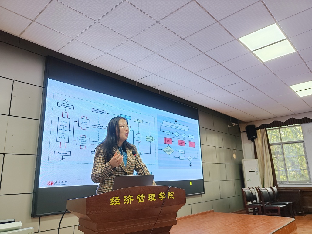 汪晗教授的报告题目为“有限理性视角下农户生态保护行为转变模拟:以北部湾海岸带为例”,她从海岸带经济发展与生态保护的矛盾、短期利益与长期利益的冲突出发,探究有限理性、有限意志与有限自利如何影响海岸带农户湿地生态保护行为,进而介绍了计量模型、结构方程模型、ABM(面向过程的建模方法)等三种研究方法的优缺点,她将ABM方法与其他方法结合,并应用于社会生态学领域,实现理论与方法的创新。最后研究发现,从众更有利于农户采纳生态保护行为,在有限自利条件下,农户采纳生态保护行为的速度更快。