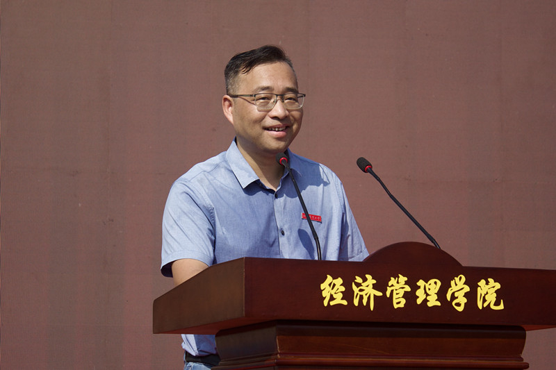 经理翁贞林教授从“以史为荣、以院为家、以师为根、以生为本”四个维度,结合公司的发展历程、团队建设、团队力量和育人成果,向全体新生做了院情介绍,寄语新生们既要仰望天空、志存高远,又要脚踏实地、身体力行,做一个知行合一的江农经管人。