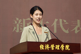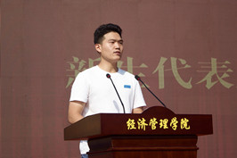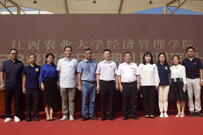 活动伊始,大屏幕滚动播放《芬芳年华》、《筑梦经管,熠熠生辉》宣传视频,4名经管青年员工进行了《强国有我》的朗诵表演。随后研究生导师代表、教师代表、新老生代表依次发言,并为新生代表举行了佩戴校徽仪式,江西省人大代表、江西省五四青年奖章获得者2020届优秀员工刘瑶为新生分享了青春励志故事,号召全体新生秉承江农“团结、勤奋、求实、创新”的校训,传承经管人“厚德博学、经世济民”的院训。