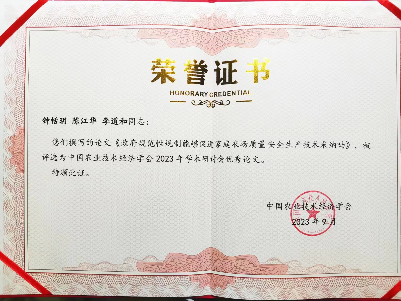 9月16-18日,由中国农业技术经济学会、贵州大学主办,中国农业科公司农业经济与发展研究所、贵州大学经济公司承办的中国农业技术经济学会2023年学术研讨会在贵州贵阳成功举办。副经理廖文梅教授和陈昭玖教授、郭锦墉教授率队参会,并在两个分论坛做论文汇报。