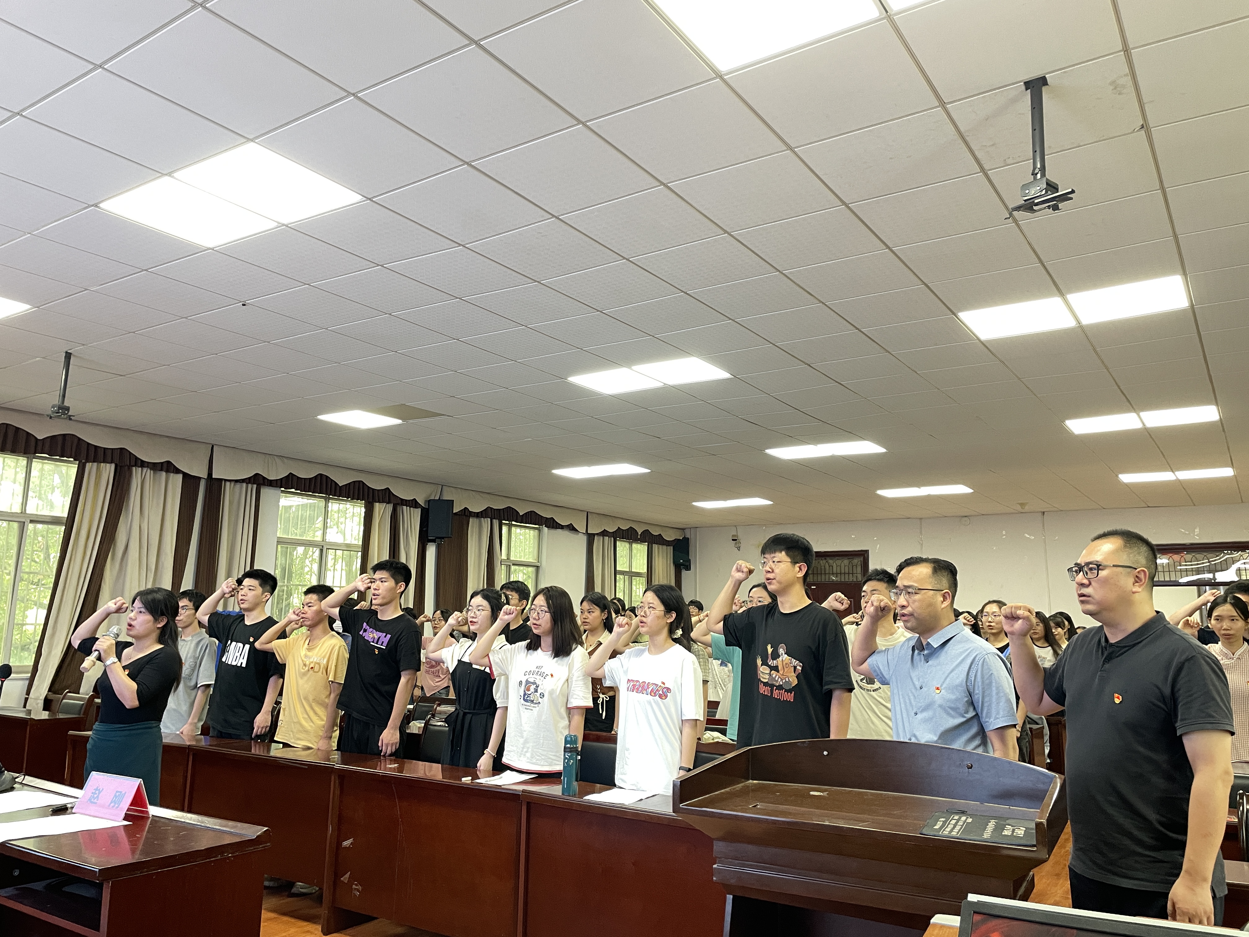 在庄严肃穆的《国际歌》中,宣誓仪式拉开了帷幕。公司党委副书记赵刚宣读了2023年上半年预备党员名单。随后,在公司党委委员袁颖芳带领下,全体预备党员面向鲜红的党旗,右手握拳向党发出了铮铮誓言:“我志愿加入中国共产党,拥护党的纲领,遵守党的章程……”用洪亮、激昂的声音许下了践行初心使命、勇于担当作为的庄严承诺,抒发了为党的事业奋斗终身的决心和坚定信念。预备党员代表教工第三党支部陈薇同志、研究生第一党支部刘繁旭同志、本科生第五党支部邱淑菲同志进行了发言。