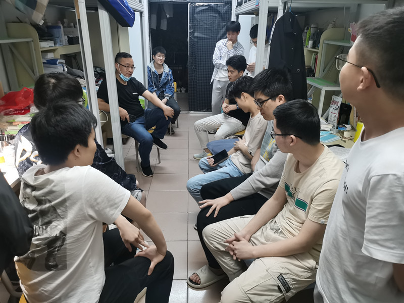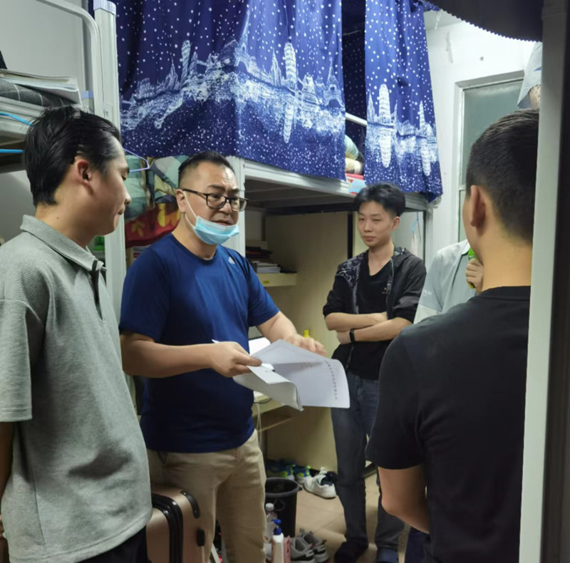 5月5日晚,为深入了解2022届毕业生论文答辩准备情况、思想动态及就业状况,公司党委书记郭军海、党委副书记赵刚带领全体在校学工办辅导员深入毕业生寝室点对点进行安全离校教育和就业指导工作。鼓励并要求毕业生们在论文答辩后积极主动走出去应聘,多参加面试积累经验弥补不足,提升个人求职竞争力;调整好心态,先就业再择业,做好多手准备,提升就业紧迫感,把握好各类就业机会;离校前夕注意寝室用电安全,及时归寝,做好离校时间安排。