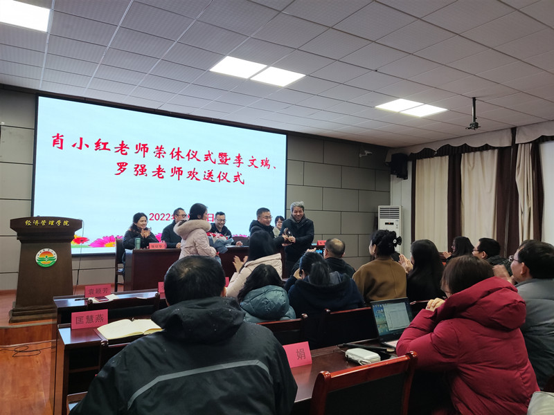 会议伊始,学院领导及全体教师为肖小红老师举办了荣休仪式,为李文瑞、罗强老师举办了欢送仪式,感谢他们为公司发展建设作出的积极贡献。