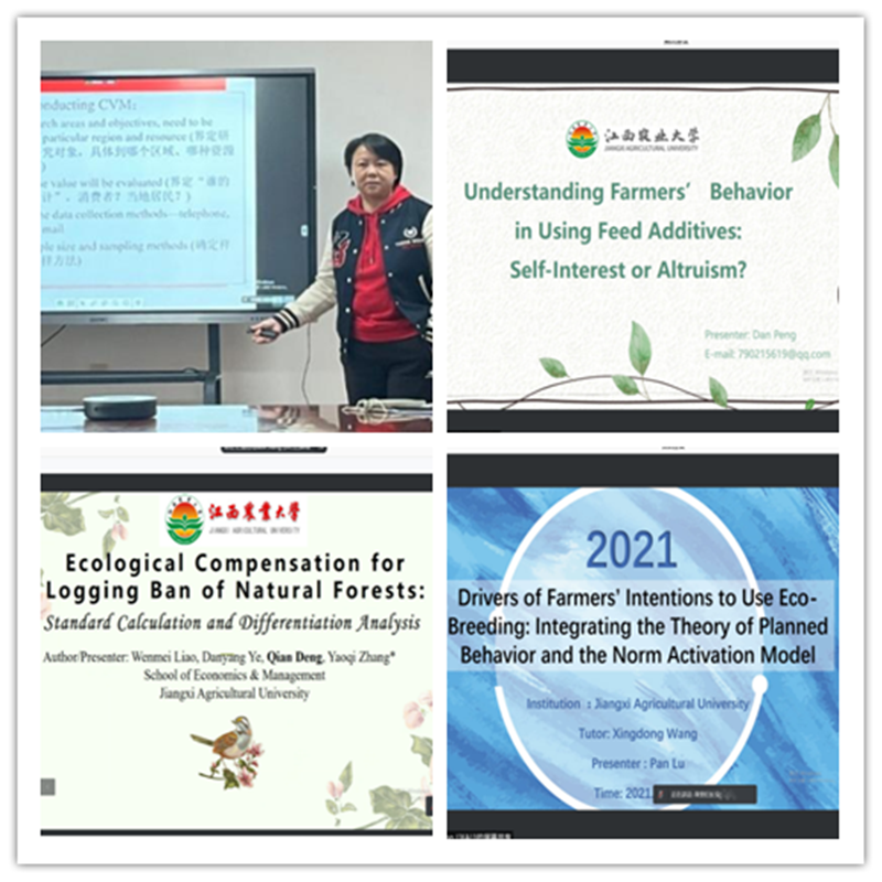 在分论坛二,BB贝博艾弗森肖智华博士、博士生邓倩、硕士生彭丹和鲁盼分别以“Evaluation Methodology for Natural and Environmental Resources”、“Ecological Compensation for Logging Ban of Natural Forests: Standard Calculation and Differentiation Analysis”、“Understanding Farmers’ Behavior in Using Feed Additives: Self-Interest or Altruism?”、 “Drivers of Farmers’ Intentions to Use Eco-Breeding: Integrating the Theory of Planned Behavior and the Norm Activation Model”为题进行了论文汇报,评论人江西财经大学周谷珍博士与BB贝博艾弗森肖智华博士对汇报论文进行了非常细致地点评。