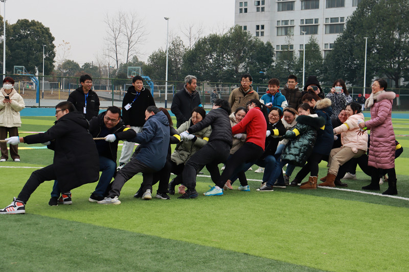 本次趣味运动会设置了“拔河比赛、绑腿跑”两个项目,全体教职工按抽签结果分为红、黄、蓝、绿四个小组。比赛现场,加油呐喊声此起彼伏,欢呼喝彩声不绝于耳,各参赛队伍肩并肩、手挽手、团结协作,经过激烈角逐,黄队获得一等奖、红队获得二等奖、绿队获得三等奖,蓝队获得优胜奖。