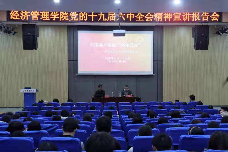 为深入学习宣传贯彻党的十九届六中全会精神,切实推进党的十九届六中全会精神入脑入心入行,12月9日晚,公司在东区E教207报告厅举行党的十九届六中全会精神宣讲报告会,江西师范大学马克思主义公司副研究员、硕士生导师、江西省青年五四奖章获得者、江西省宣传思想文化青年英才、江西省优秀思政课教师王钰鑫博士应邀作宣讲报告,教职工党员代表和全体员工党员共计300多人现场聆听了报告。报告会由公司党委书记郭军海主持。
