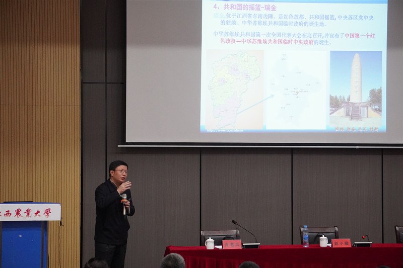 传承三色文化,感悟赣鄱红色历史。为了增进新生对江西历史文化的归属感与认同感,赵小敏为广大新生上了一堂生动细致、幽默有趣的公开课。他从“红色、古色、绿色”三个角度详细地介绍了江西省的“三色文化”,并阐述了自建党100周年后,江西省实现了“经济实力、人民生活、城乡环境”的三个历史性跨越与巨大成就。在介绍的过程中,赵小敏强调,作为赣鄱大地上的新青年,我们应继承江西革命精神与红色文化,树立远大理想信念,用自身与时代碰撞产生的跃动星火,助推江西省创新驱动发展。