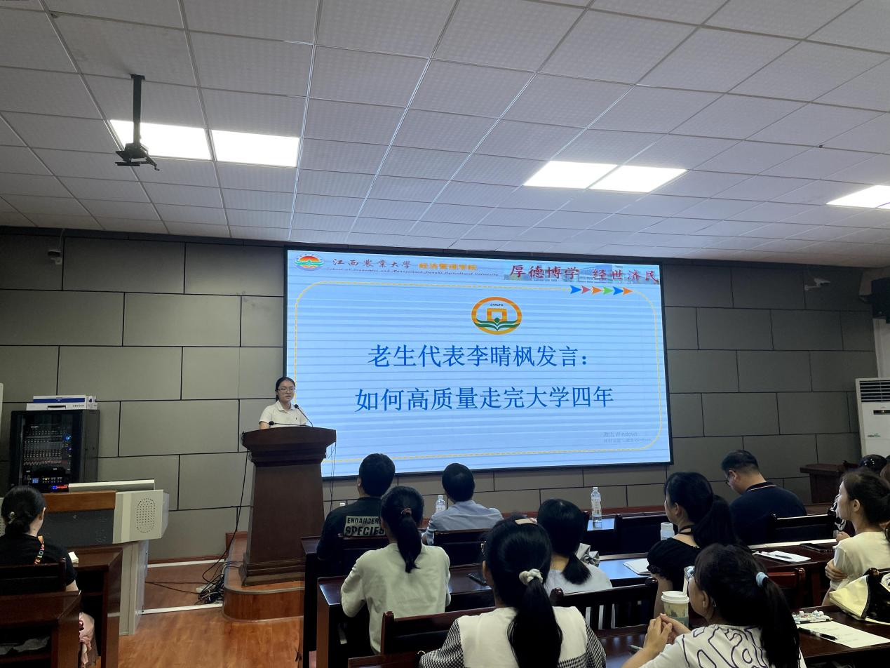 在校生代表李晴枫分享了自己大学三年多来的学习经历,并就如何高质量度过大学四年生活提出了许多有针对性的建议,并表达了与新同学们携手共进的美好期待。