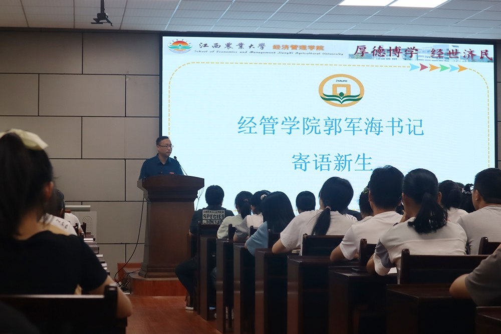 郭军海书记代表公司全体师生向2021级金融系新生的到来表示热烈的祝贺和诚挚欢迎。并以“请党放心,强国有我”为题给大家上了一堂别开生面的思政课。他从“大学之道,在于明明德,在于亲民,在于止于至善”引申出青年学子“如何树立远大的目标”、“如何提升自己的修养”、“如何脚踏实地”三个方面诠释了员工们如何在大学学到真本领,成为一个对国家和社会有用的人。