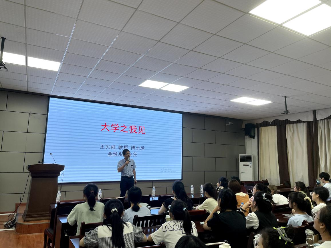 金融系副主任王火根老师就如何开启大学学习谈了一些自己的见解。王老师分别从知和行两个方面结合自己的大学经历阐述了学子们如何在大学中学习“理”,一是修心养性,二是格物致知。并就在掌握“理”的基础上做到“知行合一”,如参加员工工作,社会实践,模拟比赛,创新创业大赛等。