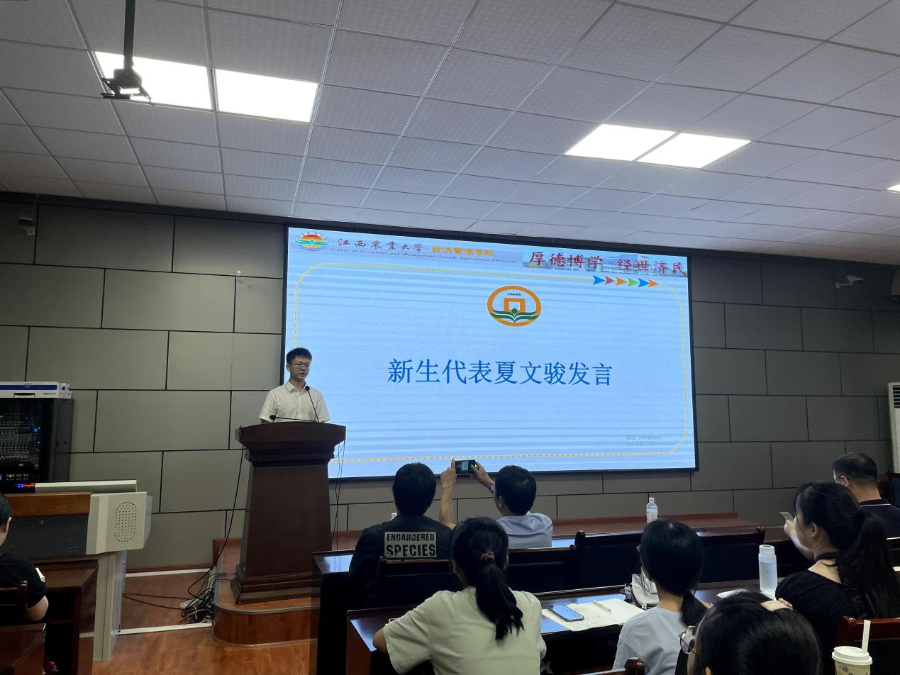 新生代表夏文骏发言,表示对老员工活充满期待,将尽快适应老员工活,珍惜公司提供的广阔平台积极进行学习和实践,与此同时,期待与同学们携手并肩,为梦想拼搏,成为新一批让公司感到骄傲,自己满怀自豪的江农人。