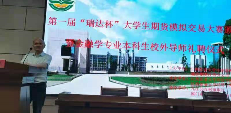为提升员工综合实践能力,更好适应新形势下人才的需求,历时1个多月的首届“瑞达杯”期货模拟交易大赛圆满落下帷幕。6月8日下午,大赛颁奖暨金融学专业本科生校外导师礼聘仪式在经管教研楼207举行。瑞达期货江西分公司总经理张天勇、瑞达期货农产品事业部总经理连小灵、九江共青村镇银行董事长孙小倩女士、公司党委副书记肖明、副经理张征华、院团委及金融系全体教师出席,金融系学子参与此次活动。仪式由金融系刘小春主任主持。