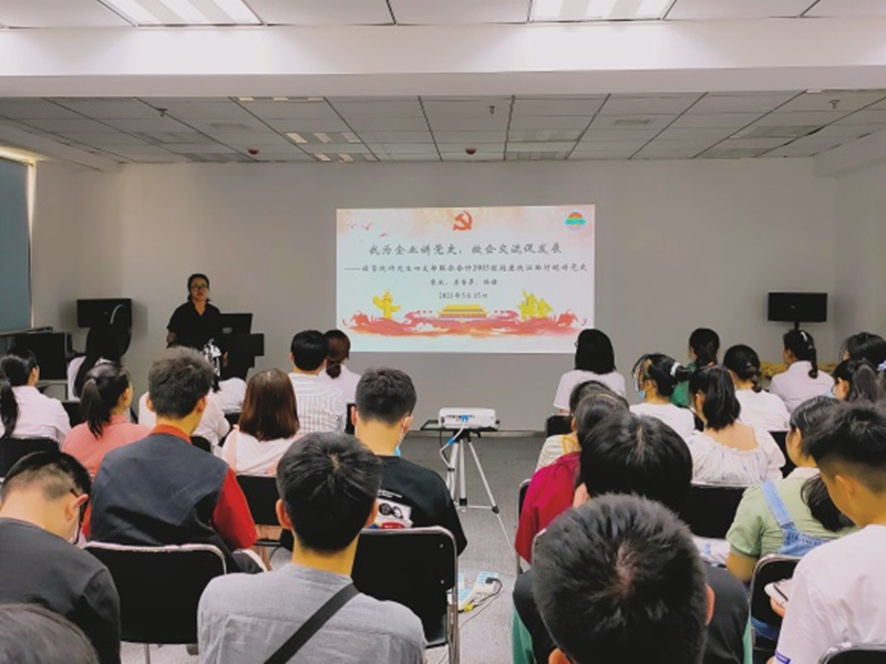 为深入开展党史学习教育,密切校企合作交流,5月15日,经管院研究生四支部积极发挥党建引领作用,主动联系会计2003班团支部赴康饮江西行销公司开展“我为企业讲党史,校企交流促发展”主题活动。研究生四支部党员、会计2003班本科生、康饮江西行销公司员工共计50余人参与了此次活动。