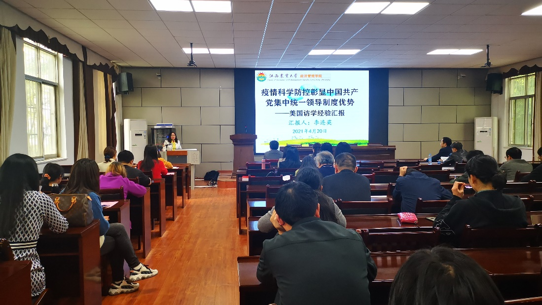 李老师汇报了自己在美国路易斯安那州立大学访学一年的有关情况,从公司、疫情、生活、教学和科研五个方面与大家分享了出国访学的收获与体会,并建议老师们出国访学要尽早规划、未雨绸缪。最后,她表示将把自己学到的知识运用到今后的教学和科研工作中,以感谢党和国家、感谢母校和公司的悉心栽培。