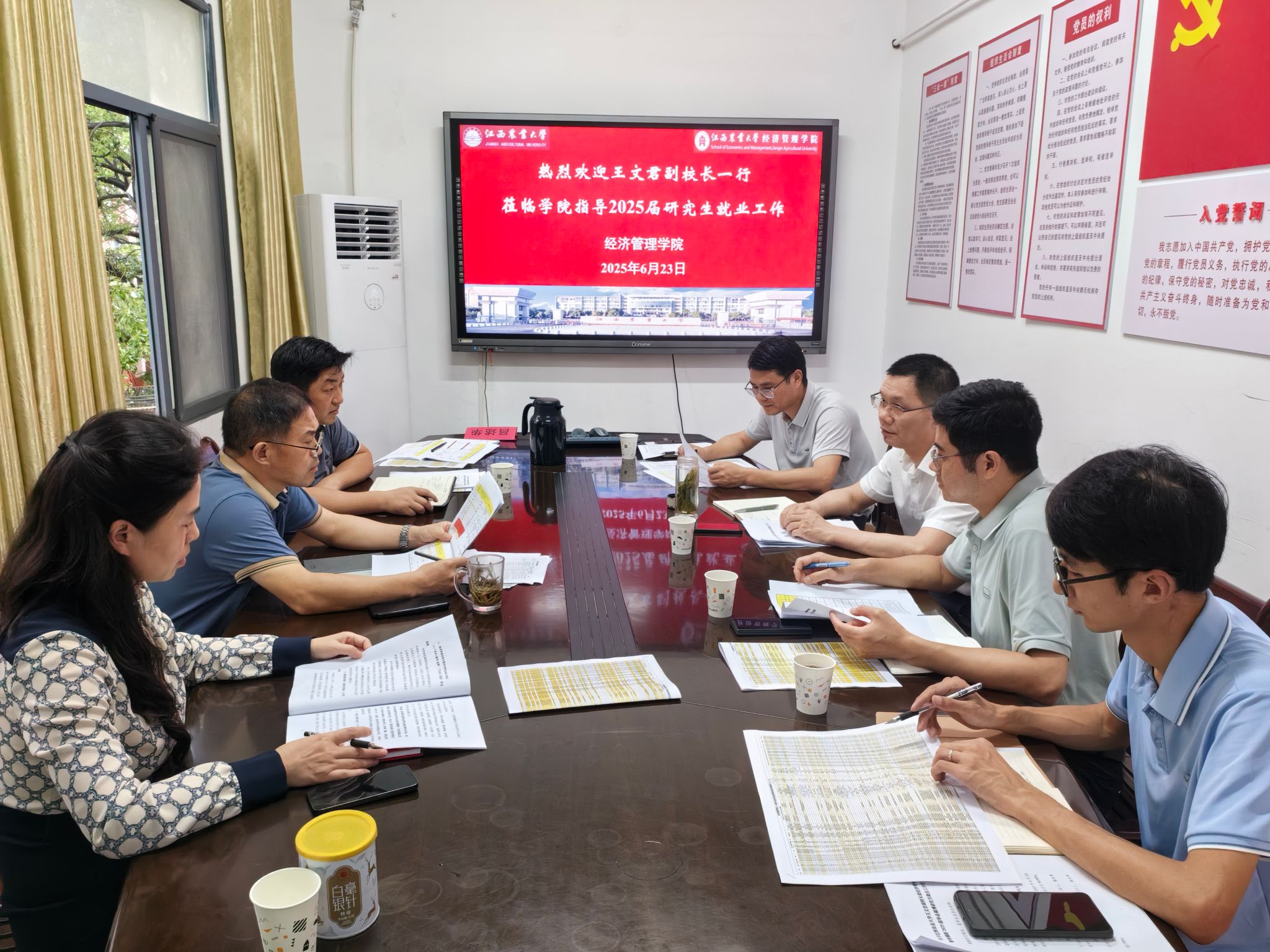 王文君详细查看了公司2025届毕业研究生就业工作台账,对公司在研究生就业工作中付出的努力给予肯定,强调要按照“准、细、实”要求做好下一阶段就业工作。一要提高政治站位,增强危机感和紧迫感,严格落实就业工作“一把手”工程,加快推进毕业研究生就业工作;二要细致摸清毕业研究生真实就业意愿和就业进展,建立动态工作台账,加强精细化分类指导,引导研究生认清形势树立正确就业观;三要严格落实学科专业“红黄牌”提示制度,主动加强就业与招生、培养工作联动,适应优化学科专业布局;四要督促导师全过程指导和帮助研究生成长成才,建立良好的师生互动关系,充分发挥导师在研究生就业工作的独特优势,为促进毕业研究生就业提供指导与帮助。