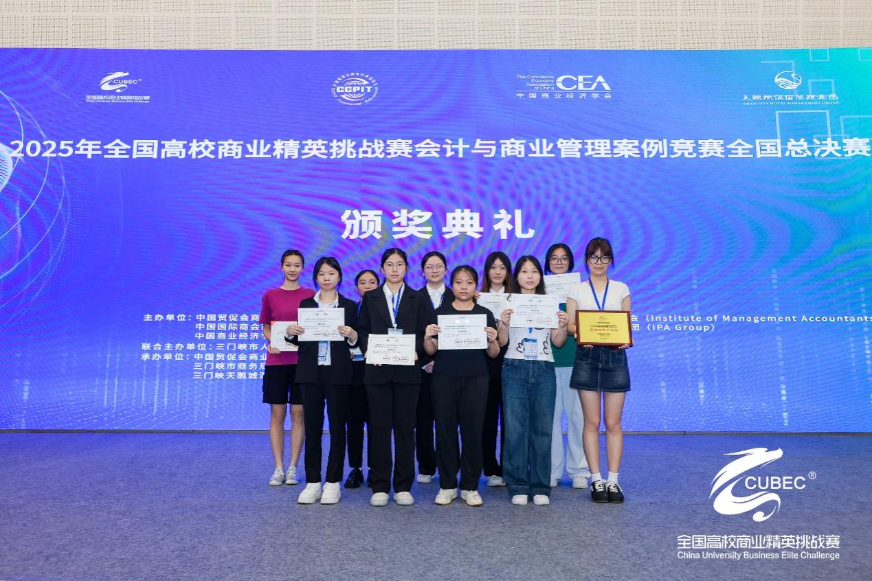 6月29日,由中国国际贸易促进委员会商业行业委员会、中国国际商会商业行业商会及中国商业经济学会联合主办的 2025 年全国高校商业精英挑战赛会计与商业管理案例竞赛全国总决赛在线上圆满收官。公司学子奋勇拼搏,共荣获奖项9项,其中,本科生组6项(国家级一等奖3项、国家级二等奖2项、国家级三等奖1项),研究生组3项(国家级二等奖2项、国家级三等奖1项)