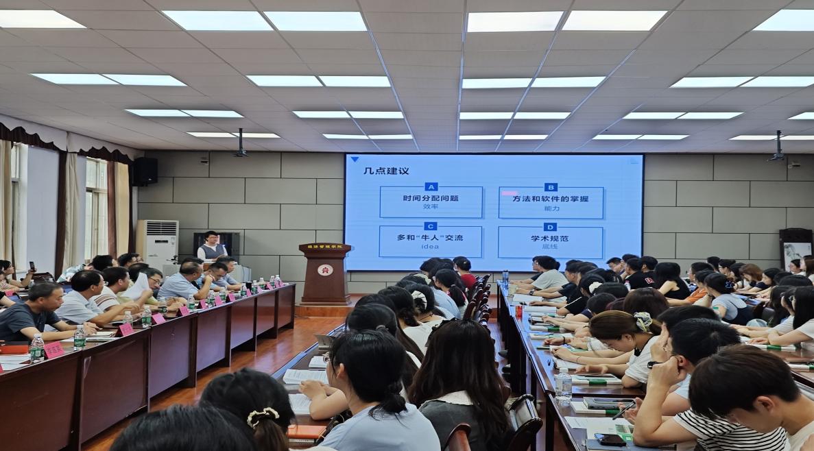 农林经济管理学科点点长廖文梅教授向各位新生展示了农林经济管理博士点的发展历程、团队队伍、已毕业博士的就业去向等情况,并强调读研一是要有三心:信心、恒心、用心;二是要有三新:选题新、方法新、内容新;三是要有三会:会写、会说、会行动。随后应用经济学一级学科点点长朱述斌教授、工商管理学一级学科点点长汪兴东教授依次做了学科介绍,为新生搭建起认知学科的立体框架。他们结合各学科的特色优势,从核心研究领域到未来发展趋势展开详细介绍,既解答了新生对不同学科的认知困惑,更针对专业选择、研究方向规划等实际需求提供了具体参考;博士生导师代表胡凯教授、硕士生导师代表曹大宇教授从自身科研经历出发,传递了文献研读、课题设计等实用经验,并引导新生以严谨务实的态度开启科研之旅。