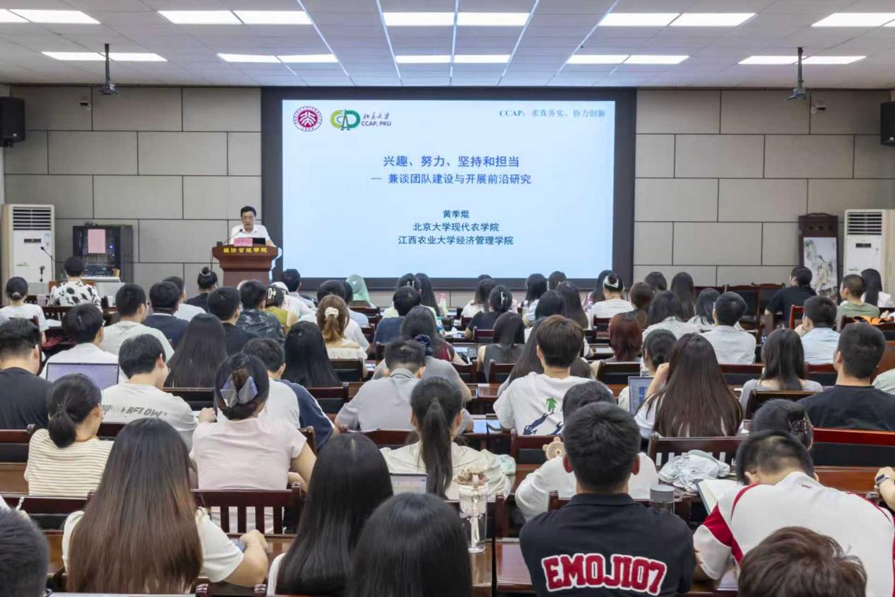 黄季焜教授以“兴趣、努力、坚持和担当——兼谈团队建设与开展前沿研究”为题,从科研工作者成长、团队建设与研究方向选择等方面展开报告。黄季焜教授结合数十年实践与个人经历指出,科研工作者成长需以 “兴趣、努力、坚持、担当” 为核心,四者环环相扣,学术突破要追踪 “真问题”,兼具定力与服务国家的使命感;团队建设需以 “求真务实” 保障科研严谨、以 “协作创新” 推动学科融合,他以中国农业政策研究中心(CCAP)团队从规模到高层次人才梯队的发展为例进行诠释;研究方向选择则要遵循 “聚焦大问题、真问题、新问题” 准则,通过学科交叉对接国家战略。