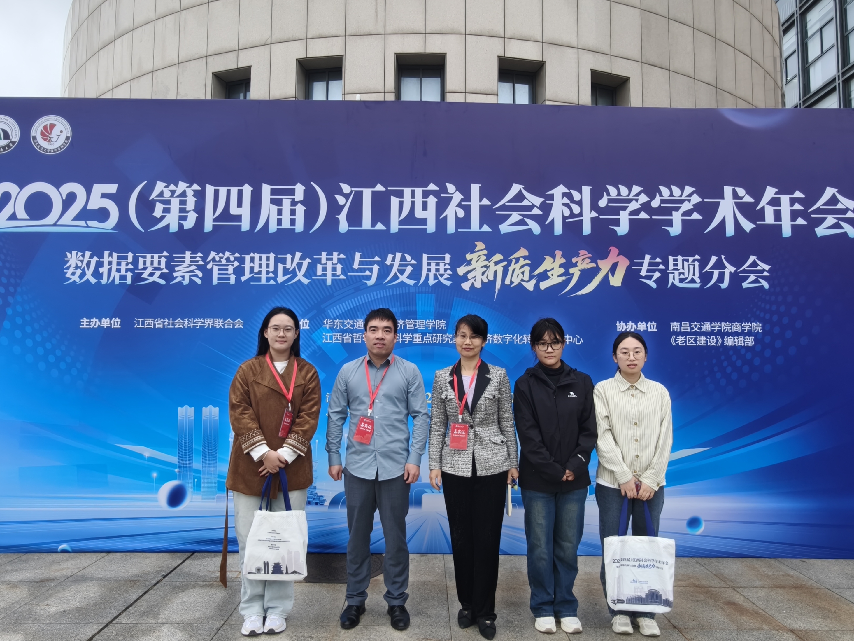 10月19日,由江西省社会科学界联合会主办的2025年第四届江西省社会科学学术年会“数据要素管理改革与发展新质生产力”专题分会在华东交通大学顺利举行,公司高雪萍教授、廖冰副教授带领硕士生应邀参与此次会议。