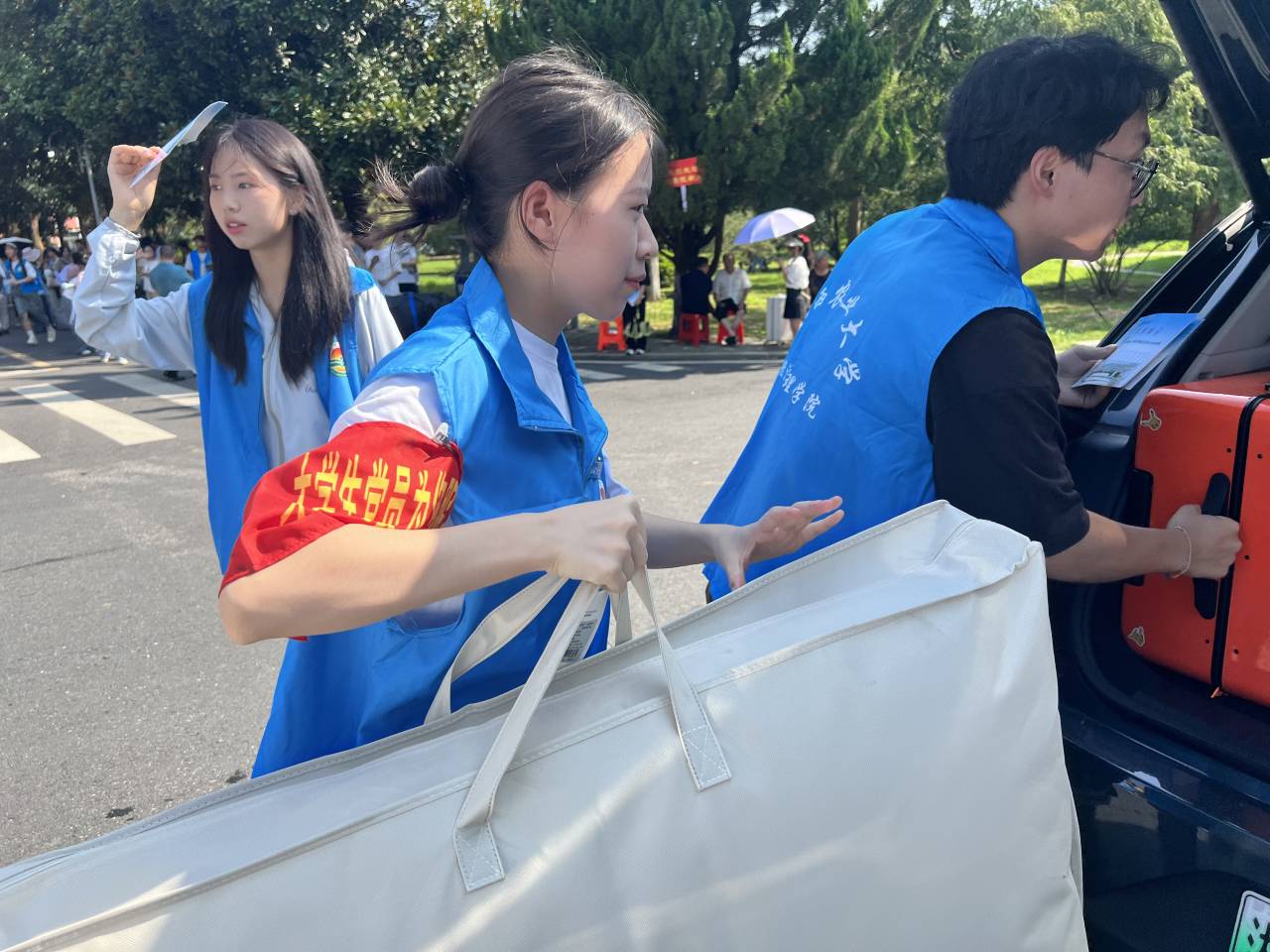 支部全面部署,成员分工明确。大家身穿“蓝马甲”,手戴“红袖标”,冲在前面,服务新生。开学之际车辆众多,道路拥挤,支部成员在帮助新生定点卸行李的同时引导自驾车辆有序停车,节省停车时间,协助配合院内各部门工作,有效避免车辆堵塞问题的出现。部分支部成员扛行李、拉箱子,帮助新生顺利抵达寝室,也向他们介绍了校内主要建筑,助力新生与老员工活“无缝衔接”,在全心全意为人民服务的实践中淬炼党性、提升道德修养和思想境界。