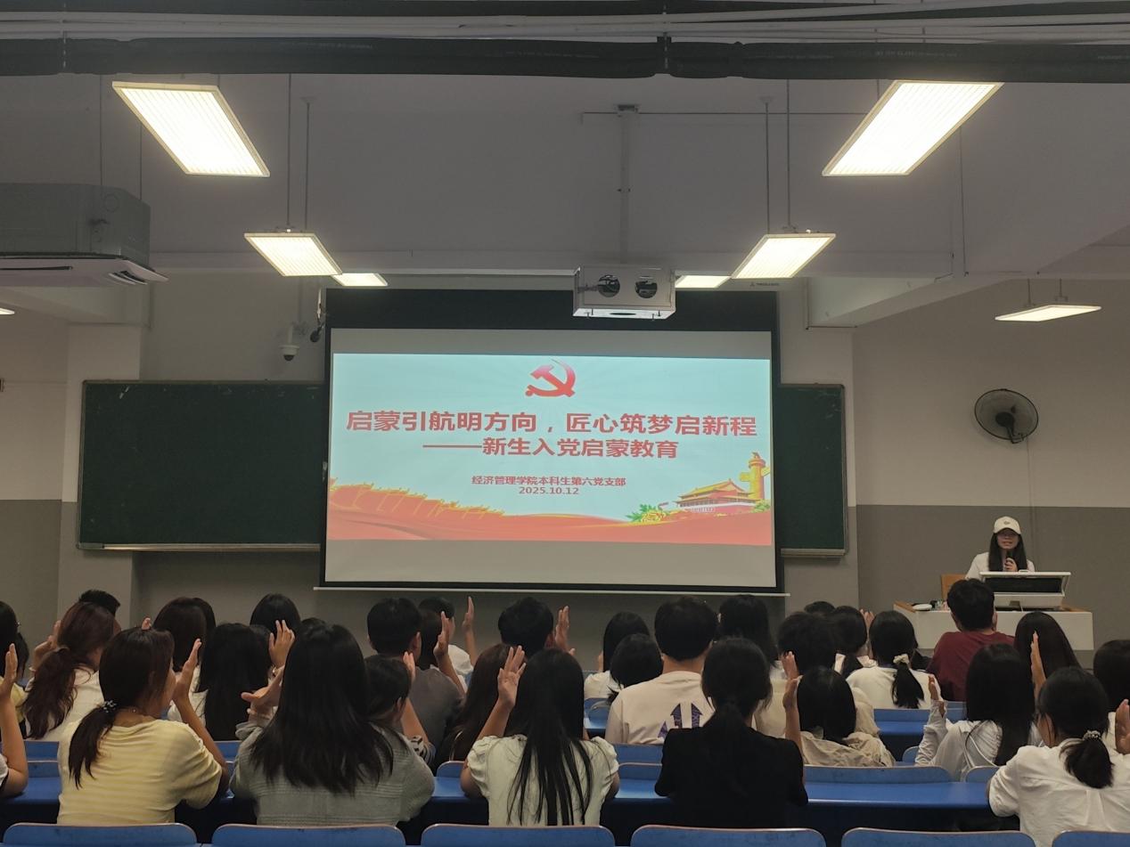 10月12日,BB贝博艾弗森本科生第六党支部在东区E教面向2025级经济学与国际经济贸易专业新生进行了入党启蒙教育宣讲。
