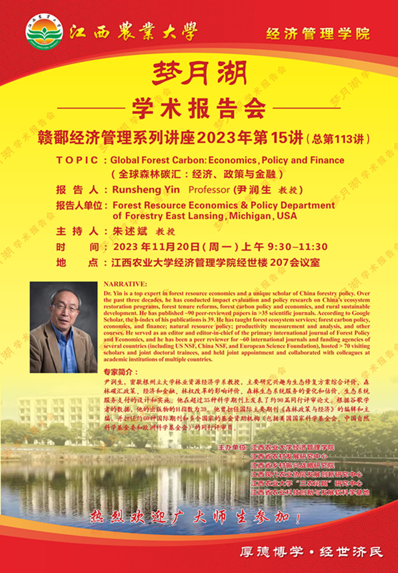 【学术报告会】Global Forest Carbon:Economics,Policy and Finance(全球森林碳汇:经济、政策与金融)