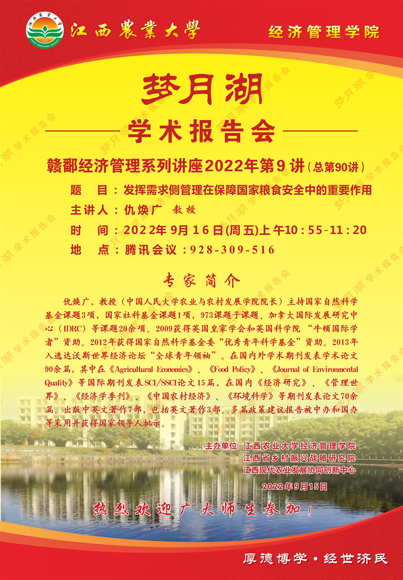 【学术报告会】发挥需求侧管理在保障国家粮食安全中的重要作用